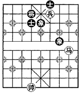 一般情况,马兵难以取胜全士象。本局由于黑方存在两个问题:一是右高士被牵制不能收回与底全连环形成互保;二是双象来不及防守左翼底线,使底士成为马兵的攻击对象,故马兵有巧胜全士象的机会。