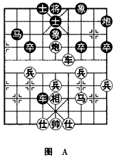 如图A是全国赛中出现的一则中局,红方缺相但多兵,更有利的是车马炮三子占位明显优于黑方之相同子力,但是占优不等于取胜,如何将优势转化为胜势呢?红方经过分析局势,采取了进车捉炮,运马渡河的进攻计划,仅用11个回合就兵不血刃地取得了胜利。