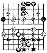 (图A)是1960年在上海举行的友谊赛中,安徽徐和良与辽宁孟立国的实战中局,双方以五八炮对单提马车布局,弈至12回合,如图所示:红方中炮压顶,小兵过河双马连环,弱点是九路“晚车”。黑方则双车灵活,担子炮左右逢源,弱点是9路边马,局势红方略好。现轮黑方走子,以弃卒为手段,实施兑子战术,化解红方攻势。当弈至30回合时。黑方突发冷箭用炮打仕,构成双车杀势,取得胜利,实战着法如下: