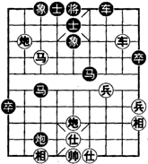 如图是1994年嘉丰杯王位赛吕钦对林宏敏弈完27回合时的形势。红虽控制中路,而黑亦有对攻子力,目前黑炮捉马,红决定大胆弃马,破象攻杀。着法红先: