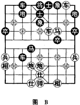 如(图B) 形势,红方双车一马在黑方左翼形成了子力上的绝对优势