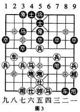 图3是12省市邀请赛中,北京臧如意与江苏徐天红、所弈成的中局形势。黑方在红方右翼底线有攻势,但红方多子,如让红方扭转被动局面,排除底线顾虑,黑方将很难过,遂背水一战,喂车马口,塞断边相退路。