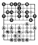 [小结]本局黑挺3卒式,是侧重防守反击的下法,红方宜采取(乙)变进炮过河徐图进取的方案,黑方较难反扑。(甲)变肋车压境,属急攻战术,易于形成复杂纠缠之势,双方各有顾忌。