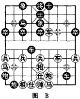 如(图B)形势,红方退马捉车,采用兑子战术,试图瓦解黑方的进攻势头。黑方不为其所诱惑,弃车吃炮,构成杀局,着法十分精彩。