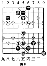 如图形势,红 方抓住战机连弃车马,炮 回防射车利用仕架一举 中的。