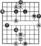入底兵妙着,至此黑方双士将均不能走动,而红方下一手可炮五平八做杀,黑方无解。红方胜。