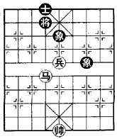 马高兵对单缺士属例胜局势,取胜关键是兵借马力,压将胁士,构成帅与兵分成左右夹攻之势,逐步推进。如图,红先胜: