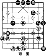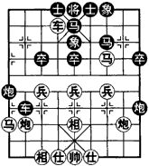 (附图)所示,红炮兑马,算准交换后可掠边卒及象, 着法简明可取。