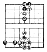 [学习要点提示」 红方通过连弃双车兵,将黑 将固定在不能动弹的角上,然后用借炮使马的技巧构成杀局。