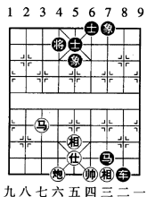 破解思路:黑方车炮卒大军压境,已成绝杀之势,红方见无回天 之力,索性放手一搏:炮控中路,使老将不能回槽,再大胆弃车,重炮作杀。
