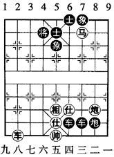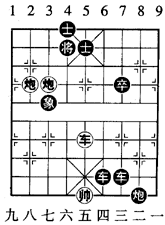破解思路:黑方车马在红方右翼成抽杀之势,而红方乍看车马炮 毫无作为,但大胆弃车攻破黑方防线,平炮闷杀等一系列战术组合,令人拍案叫绝。