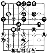 如图,是1995年全国团体赛广东吕钦对火车头于幼华弈至第15回合时的形势。由中炮横车七路对屏风马飞右象左炮巡河布局演变而成。观枰,红车马在沿河被牵,并有窝心马的弱点,黑占主动。现在该黑方走子: