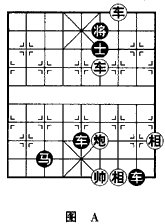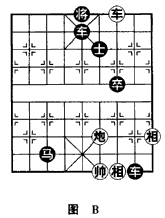 如图A,选自象棋古谱《适情雅趣》第26局,名《同心辅政》。本局与《桔中秘》“异地同心”一局数着着法虽同,而运子及杀局亦别具一格。