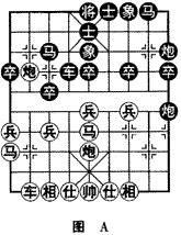 是1975年全国棋赛安徽丁晓峰对北京朱学增弈至第15回合时形势如(图A)。双方以五八炮进三兵对屏风马布局而成。现双方大体均势,大子处于相持阶段。黑方经过仔细分析,洞察到红方边马呆滞,中马缺根的致命弱点,巧妙运子,攻击红方中路,继而扑出底马,直奔卧槽,马到功成。实战着法如下: