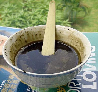 如上图的龟苓膏粉量(20克)需上图这样的小碗两碗水。