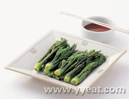 (2) 把烫好的菘木芽儿切成两半﹐以佐料拌好。