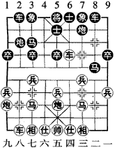 黑方眼见右翼车炮受牵和中马受攻,遂8路黑马摆脱三兵威 胁,毅然踏边兵窥炮,可谓艺高胆大。