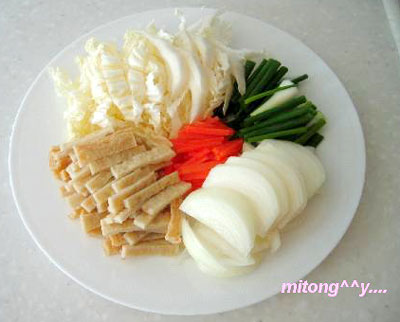 材料:年糕、甜不辣(如果沒有也我妨)、洋葱、紅萝卜、白菜、葱 、韩式辣椒醬休 闲 居 编 辑