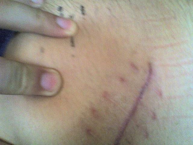 07年4月5号做的切除阑尾手术现在已经27号了,但是今天去看伤口的时候发现刀口的刀巴都没了。但是刀口变红了缝线的几个小点点也变红了,按进去还带疼,请问这是正常的吗?