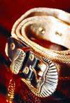 也有并不是这么直接用硬邦邦的金属做皮带的,但是把金线、银线缝在布的腰带上,看起来也是如此金光璀璨,华贵非凡。