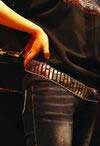 由于皮带比较宽,所以遮在长衣服里头自然是秀不出来的,而且它不是真用来束紧裤腰的,不然宽皮带夹腰会不舒服。皮带的订孔都不是很密,摆明了就是做装饰的。最好的搭配是配低腰牛仔裤,皮带刚好围在肚脐以下,髋骨侧边,稍稍有点松垮的感觉。皮质的时尚和水钻的耀眼就会随着小蛮腰的扭动露出风情。
