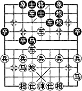 如图 ,红方平炮打马,急躁之着。应走车五退一,前炮进7,马一退三炮7进8,仕四进五将5平6,炮五平四车6平4,炮四平六车4平6,仕五进四,红方得子。