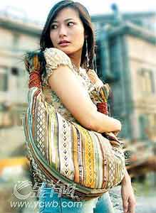 墨绿色的丝绸为底,配上大片孔雀羽毛般的绣花,各种各样的亮珠片镶嵌其中,带着浓浓民族风情,配上真皮肩带,华丽而不张扬,走到哪里都绝对能够吸引眼球。价格:718元。
