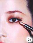 5.深金棕色眼影棒抹在下眼睑尾部呼应整体眼妆色彩。涂上浓密睫毛膏,反复仔细地刷上2~3层制造丰盈的睫毛效果。