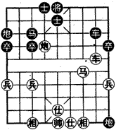(棋例1) 1984年全国象棋团体赛,辽宁卜风波对火车头梁文斌,弈至第25回合时的形势如图、双方以仙人指路对卒底炮布局。黑方多于少双象,现正兑车,红如接受兑子,则局势简化,