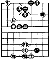 如图形势,黑方正以车捉兵。红方应采取移车保兵还是 移兵伏攻呢?这是值得研究的 课题。通过参照比较可知,平肋兵可与二路炮相呼应,通过炮二进一叫将,可以将兵推入九宫助杀,这一点是很重要的(如果红方炮在左翼,那么平肋兵就没有积极意义了)。如果采取保兵策略结果如何呢?我们作一下试变:车八平七,象5进7,红方兵受牵制,并不能推兵刚进助攻,黑方易走。