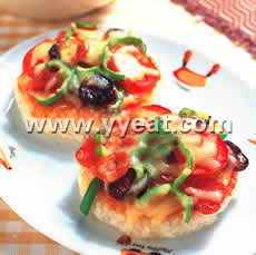 4.将美乃滋与蕃茄酱调匀,涂在煎好的饭糰上,再将腊肠、小蕃茄切成薄片,与青辣椒一起摆在上面,撒上起司丝,放入烤箱以中火(170℃~180℃)约烤10分钟即可。休 闲 居编 辑