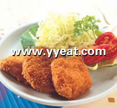 3.将小里肌依序沾上低筋面粉、蛋汁、面包粉,然后用低温油炸熟,再转中火炸酥,放入盘子里备用。