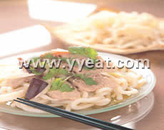 (1)将猪肉切片状,放入沸水中汆烫至熟,取出待凉备用。