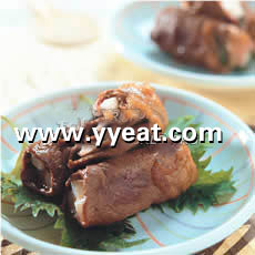 4.烧热平底锅,加入沙拉油,再把做好的牛肉卷放入(捲口处朝下),用筷子翻面,让牛肉卷均匀受热至熟,再加入调味料2,等牛肉卷均匀沾到酱汁后熄火,即可盛盘。休闲居 编 辑