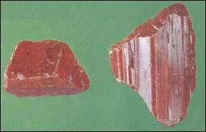 雄黄:色红胜于腰黄,而透明度及光泽又逊于腰黄者。