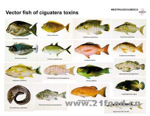 带有雪卡毒素的热带珊瑚鱼广泛存在于太平洋、印度洋等热带、亚热带海域的珊瑚礁周围和近海岸,全世界约有400多种。我国有30多种,主要分布在广东、南海诸岛,其中包括海产品市场和餐桌上常见的老虎斑、东星斑、西星斑、杉斑、苏眉等石斑鱼和鲈鱼等。雪卡毒素属于神经毒素,无色无味,脂溶性,不溶于水,耐热,不易被胃酸破坏,主要存在于珊瑚鱼的内脏、肌肉中,尤以内脏中的含量最高。