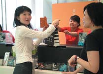选择购物地点:LIULIU想一次性购齐所有的彩妆,而对于睫毛膏、胭脂、粉底、唇彩所喜欢的牌子又都不一样,所以建议她去一线化妆品比较聚集的一站式化妆品专卖店,最后选定在上海SEPHORA化妆品店,消费者可以在店内肆无忌惮地试用DIOR、CHANNEL、GUCCI、LANCOME……如果时间充裕的话,还可以由店内的化妆师专门设计一个完整的妆容。对于喜爱购买品牌的LIULIU来说,选择的空间真的很大。今天她还有幸在SEPHORA资深化妆师Joyce的指导下选购。