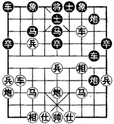 (棋例)1974年全国棋赛,上海于红木对四川陈新全,弈至第18回合时的形势如图。双方以中炮过河车对屏风马平炮兑车布局。红方两个明车,各子灵活且有一兵渡河,已叫吃黑右马。现