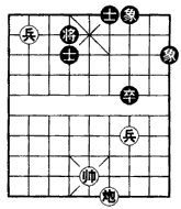 如图残局,红炮双兵对黑卒士象全。红方用帅停着取胜的佳构。着法红先: