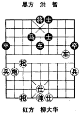 如图,是1997年第四届“嘉丰房地产杯”王位赛,柳大华对洪智快棋弈完第78回合的残局形势。观枰,由于黑缺双象,防守困难。红方车炮有利开展攻势,现在轮红方走子,在对攻中红掠士控制中路夺势取胜。