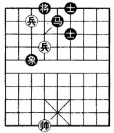 如图残局,是红方双兵用帅停着巧胜黑马单缺象之局。着法红先: