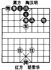 如图是1998年第九届“银荔杯”全国冠军赛第6轮胡荣华对陶汉明快棋第3局弈完第86回合的残局形势。形成红车炮双仕对黑马炮士象全。现在轮红方走子,红方妙用“底炮、中炮”攻法控局夺胜。