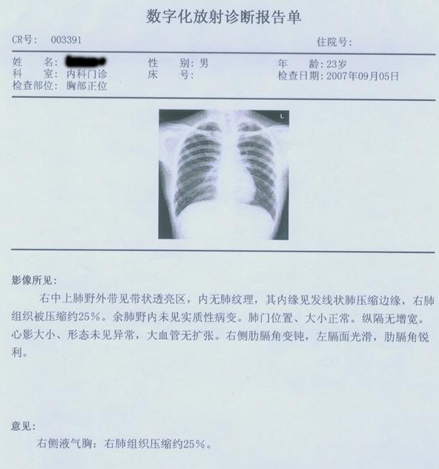 气胸的治疗(压缩25%)__附医院放射性照图