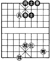 如(图),是红炮兵仕相胜黑士象全的残局。红方利用“缺象怕炮攻”的诀窍,以兵破象算谁胜局。着法红先: