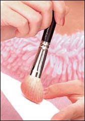7.扫出均匀腮技巧:先在纸巾上抖掉多余的腮粉,然后再扫在脸颊上。