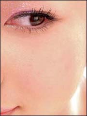 6.腮红:红粉绯绯:以透明的粉红色涂抹在两颊处,将腮红的范围加大,便能呈现出自然红润的效果。别忘了在T字区和下颌处也扫上粉红色,让你的气色更好。