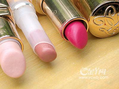 1.找出三种唇膏,一个是过浅的珠光色、一个是颜色过艳又不舍得丢的名牌唇膏,嫌它们不够滋润,还找来快用完的肉色润唇膏。