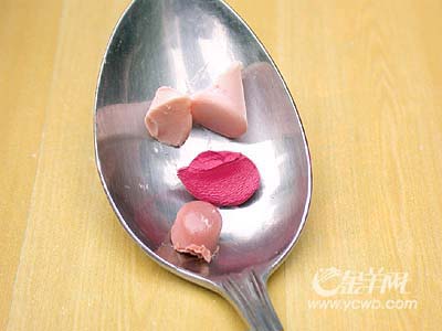 1.转移溶液时不要直接用勺子背刮唇膏面,因为会有黑色烟炭粒,必须将其用厚纸巾先抹去