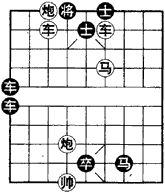 棋势与对策:黑方双车一马要杀,同时,炮保士。红方也是用砍的兵法,用车硬砍士,以砍取胜。