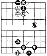 棋势与对策:黑方小卒剜心,两炮三卒要杀。红方则用砍的兵法,以砍取胜。